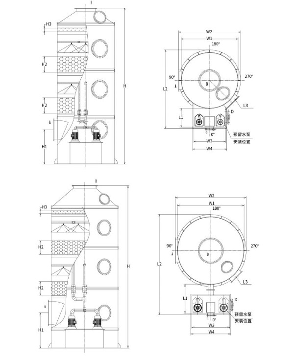 Typ 2: Split-Typ-Wassertank-Sprühwäscher (Turmdurchmesser: Φ2500 mm–Φ3500 mm)