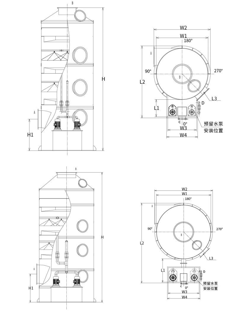 Typ 1: Integrierter Wassertank-Zyklonwäscher (Turmdurchmesser: Φ1000 mm–Φ2200 mm)