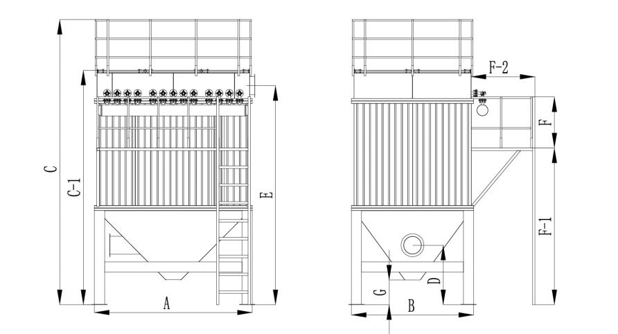 Hinweis: Aufgrund von Standortbeschränkungen oder Transportbeschränkungen kann die Anzahl der Aschebehälter in Pulse-Jet-Schlauchfilter-Entstaubungsanlagen variieren und von einer bis zu mehreren Einheiten reichen.